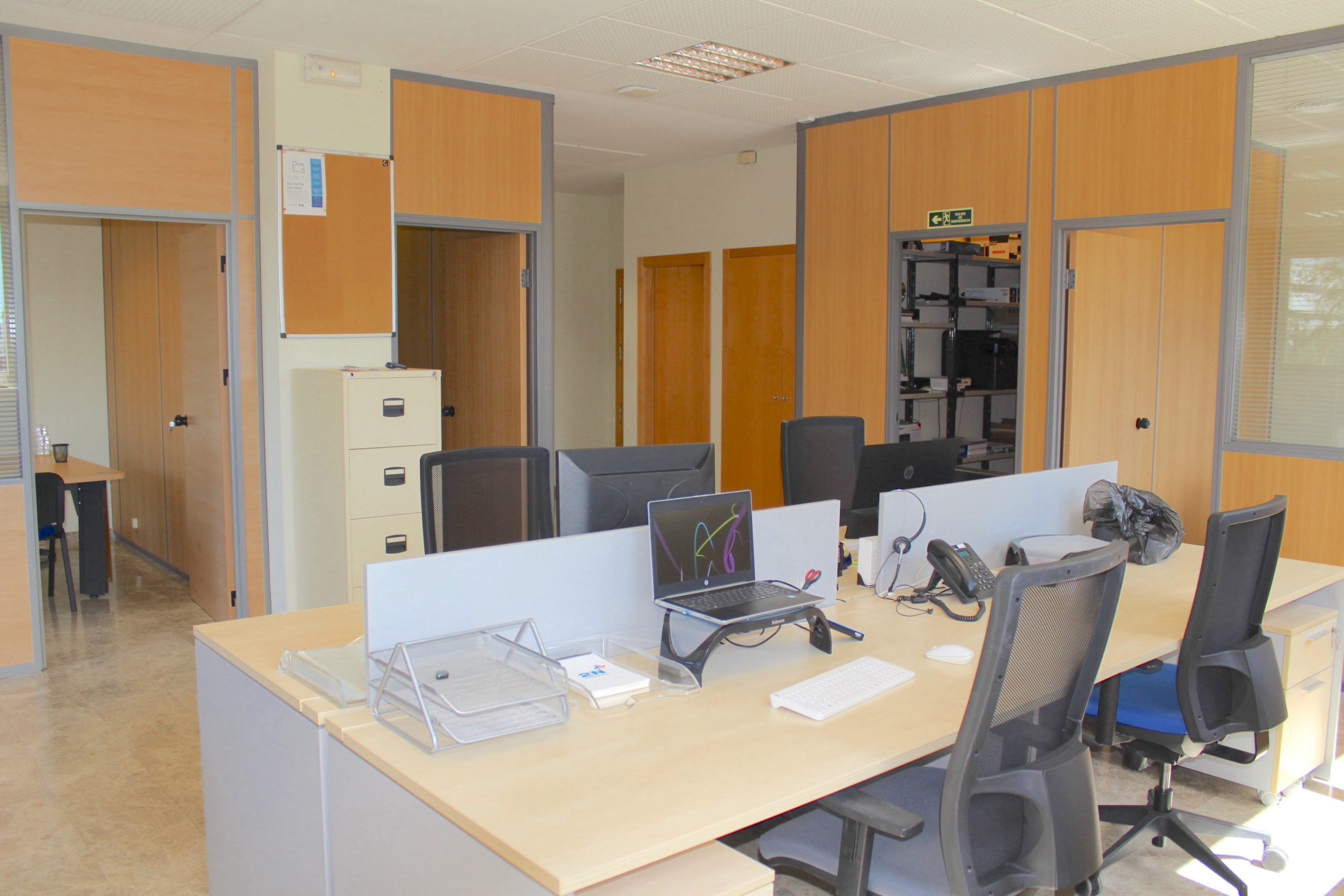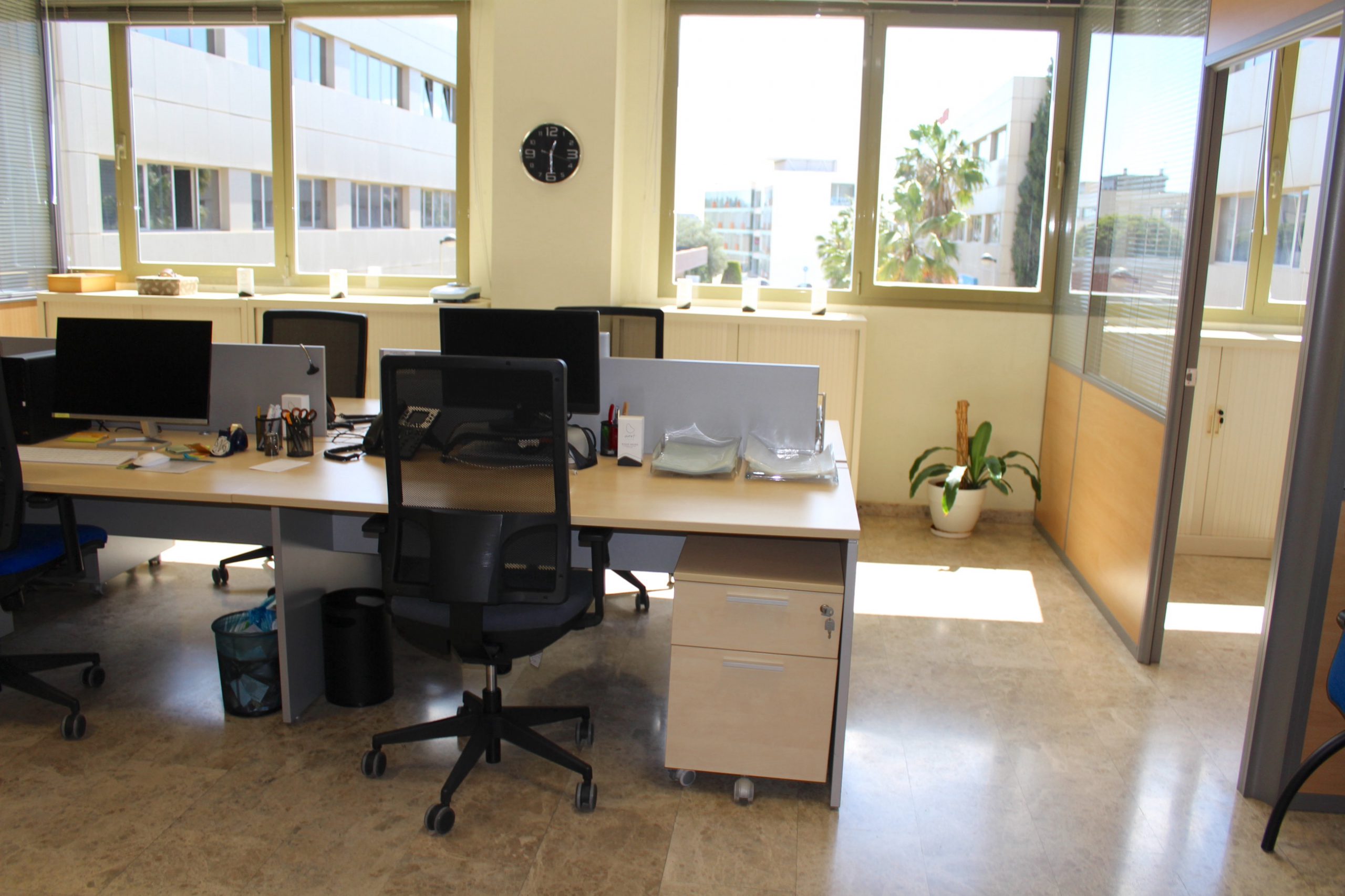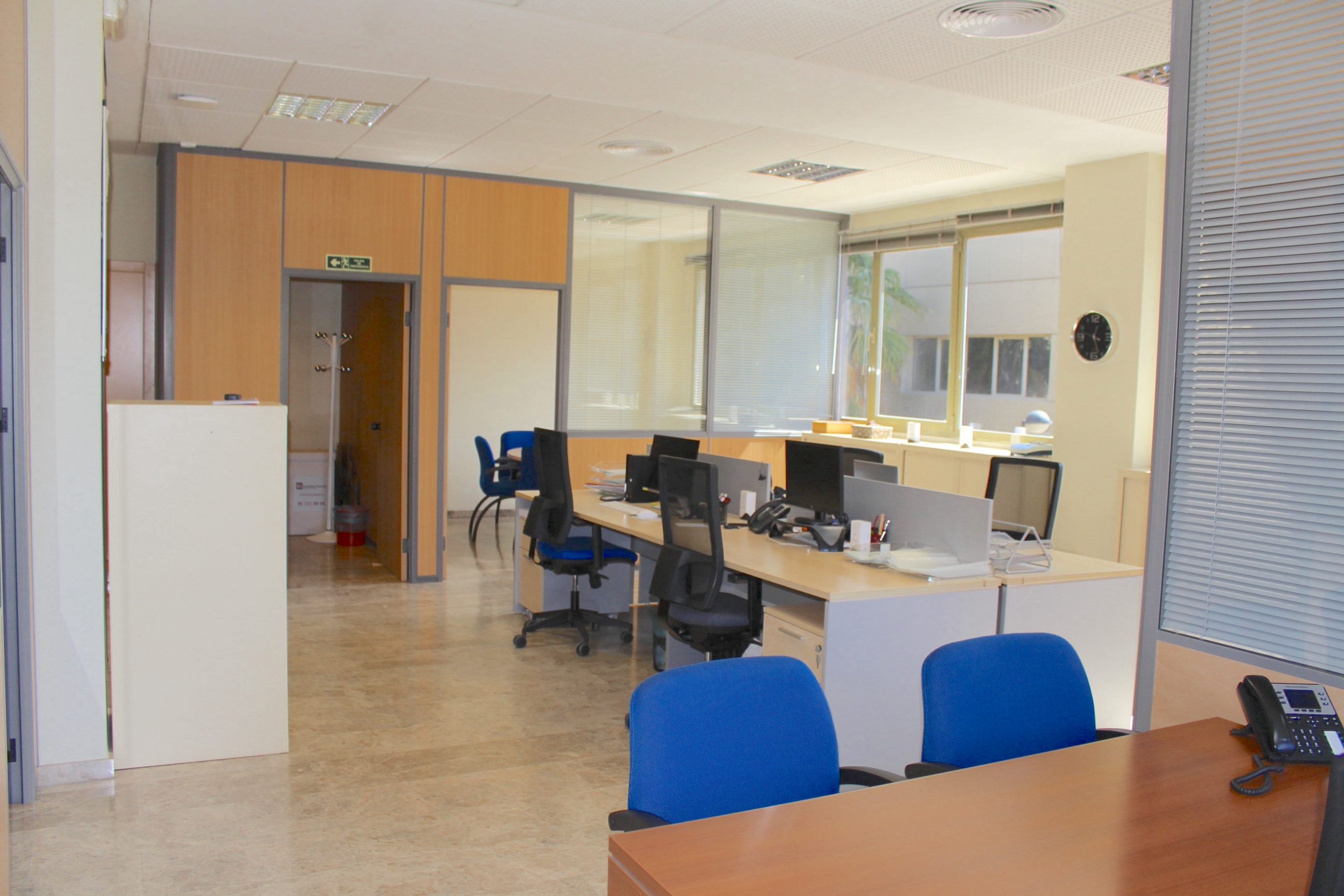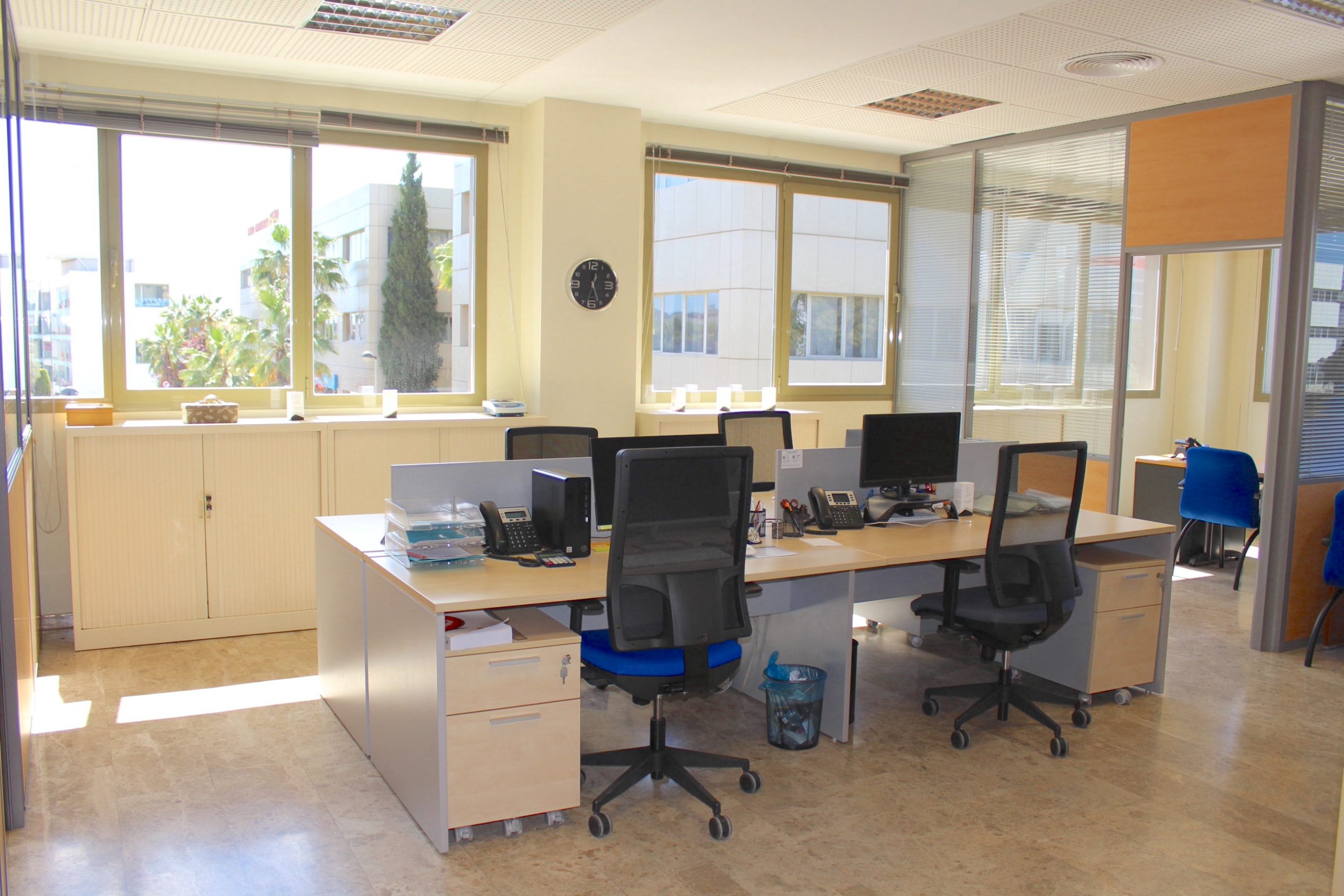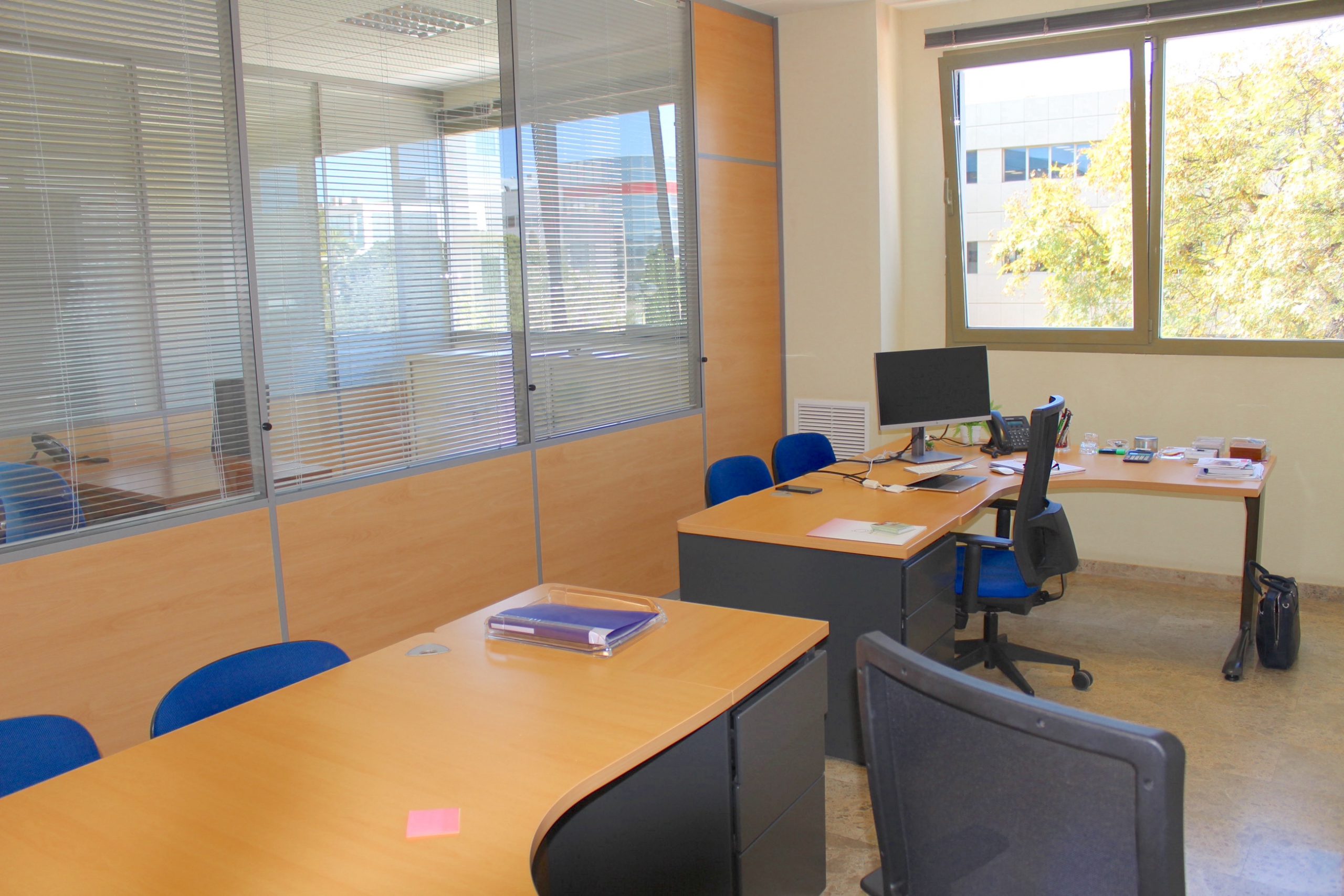 Descubre esta espectacular oficina esquinera muy luminosa y con varios despachos, oficina semi amueblada de 150 m² ubicada en la segunda planta de un moderno edificio construido en 2009. Este espacio luminoso y acogedor es perfecto para aquellos que buscan un ambiente de trabajo inspirador. Con capacidad para 10 puestos de trabajo, cuenta con un sistema perimetral de voz y datos que garantiza una conectividad óptima. Además, el aire acondicionado con calefacción centralizada asegura la comodidad durante todo el año.